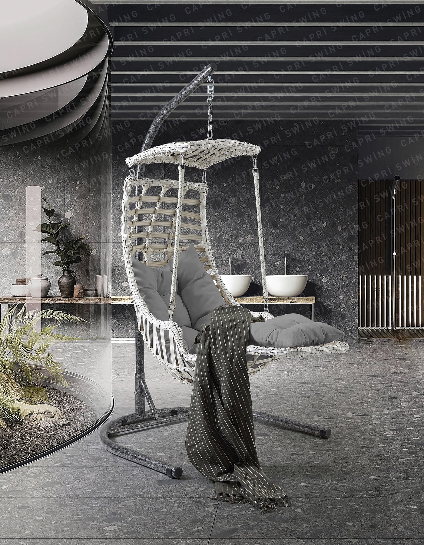 Malzeme: Rattan Gövde, Su Kaydırıcı Kumaş, Zincirli Çelik Askı Aparatı.