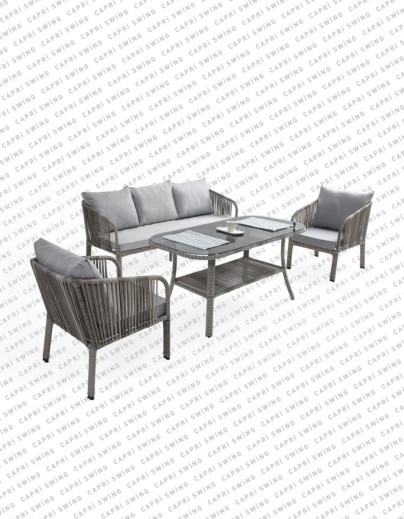 Çok Yönlü Kullanım: Neme ve yağışa karşı dirençli Capri Swing Artemis Rattan mobilya takımı, dört mevsim kullanım için idealdir.