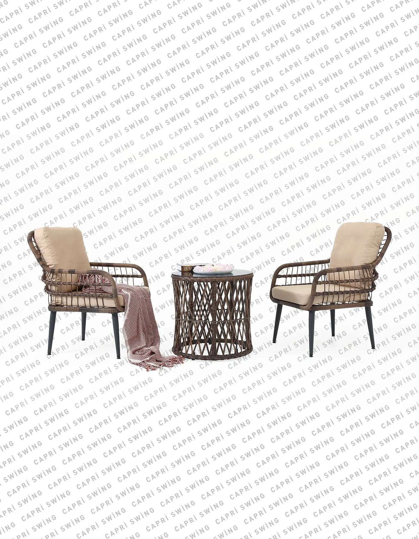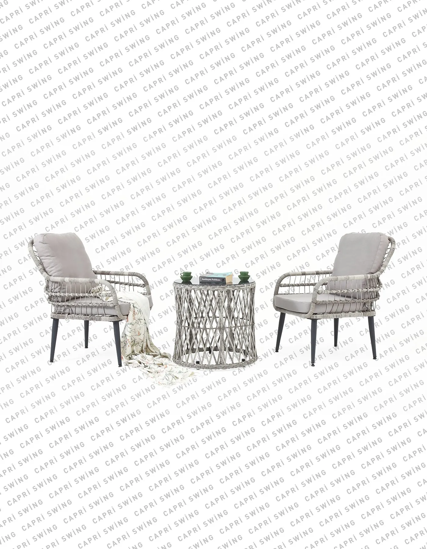 Çok Yönlü Kullanım: Neme ve yağışa karşı dirençli Capri Swing Pisa teklirattan mobilya takımı, dört mevsim kullanım için idealdir. İc aksam metal iskelet, elektrostatik toz boya ile fırınlanarak boyanmıştır
